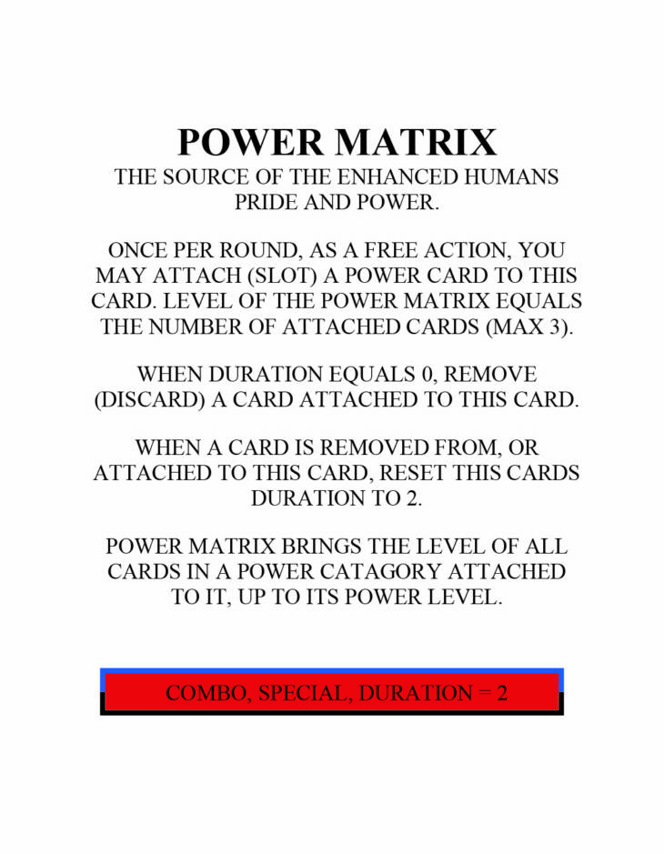 This deck has a great concept. Use a bunch of powers from four different categories (body enhancement, energy, psychic and body alteration) to bring down your enemies. The powers even get stronger as you level-up your Power Matrix for more damage, longer duration and more powerful effects. Sounds good right? Well, let me tell you, you are not going to get far with this deck without a Power Matrix. The good news is your special ability allows you to just get one. Fantastic. The bad news is, you will constantly need to manage your Power Matrix, like, every other round and sometimes every round. It’s like having a two-year-old that you have to constantly watch and take care of, while you’re trying to fight someone. Another point of annoyance is how the power matrix eats up your cards. You may have a cool card you want to play, but you need to feed a card to your Power Matrix or it will go down in power levels. Tough choice. On the plus side, deckbuilding really allows you to focus your deck and have more of the power categories you want. Because if…IF, you can manage your Power matrix, this decks cards can be more powerful than any other deck. Add crazy diversity to that power and you can be a nightmare for your foes. Because you have to manage your Power Matrix and you’re going to be dealing with multiple power categories and the power levels of each card can change, this deck is an INTERMEDIATE deck. How good this deck actually is, is going to depend on if you deckbuild and if you can properly manage your Power Matrix. If you do and can then this deck is GREAT! But if you struggle with either, then the deck will be MEDIUM to GOOD.